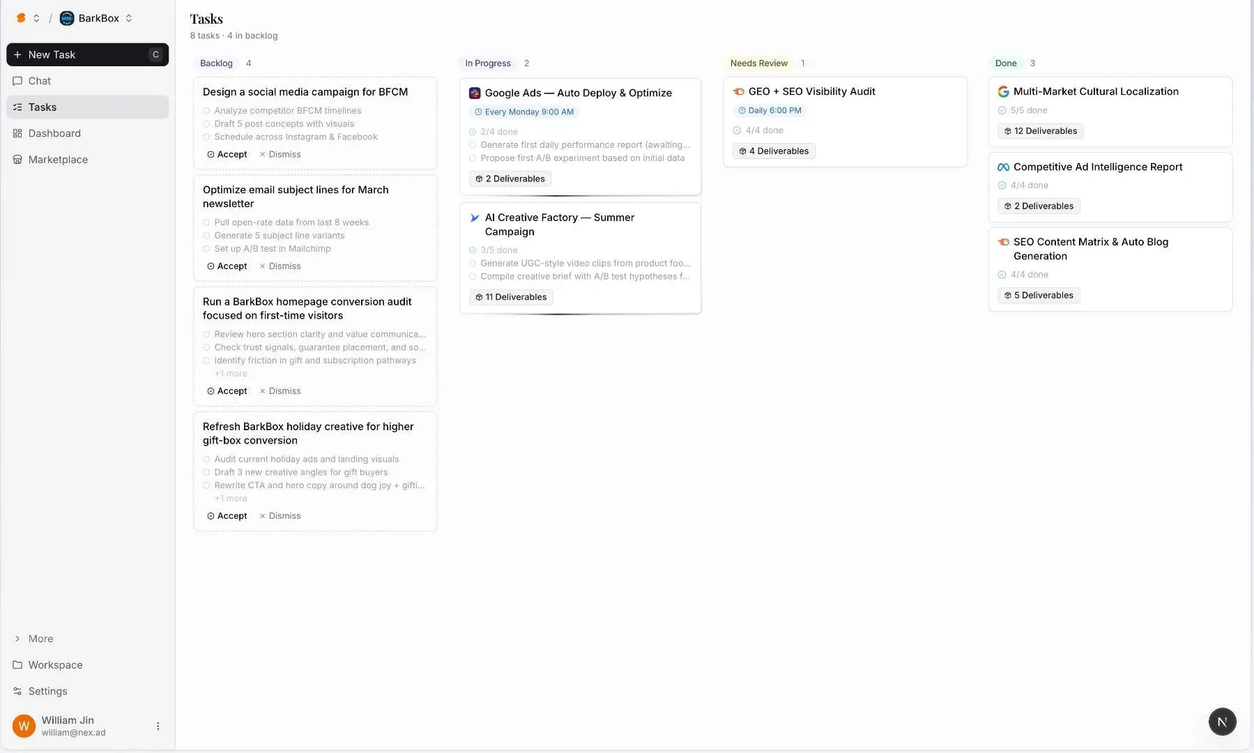 Soku AI unifies fragmented context across paid, organic, email, and social, then runs root‑cause analysis to show what actually moved performance—spend shifts, audience fatigue, funnel leakage, or keyword gaps. On top of insights, it generates action‑ready outputs: weekly recaps, budget recommendations, SEO content briefs, audience segments, and experiment ideas your team can execute immediately.